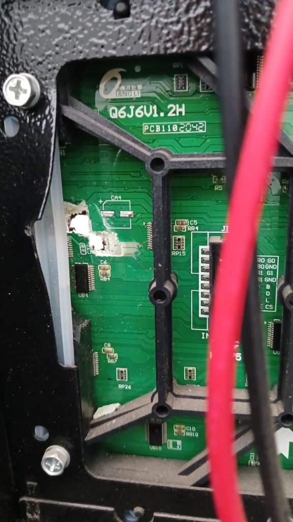 — При внимательном осмотре наш электрик увидел на экране отверстия, похожие на пулевые – сквозные и круглые, — рассказал директор компании «ПлазмаВижн» Рубен Оганесян. – Это был акт вандализма, причём целенаправленный. Потому что в конце октября произошло подобный инцидент. Тогда мы насчитали семь отверстий, а после второго – 24 в общей сложности. Некоторые пули задержались в несущей раме, а часть – пройдя насквозь, застряла в бетонной стене. Это были свинцовые блямбы. После первого раза нам удалось починить технику, тогда просто некоторые пиксели не светились, и она вновь заработала. А во второй раз из строя вывели платы управления.