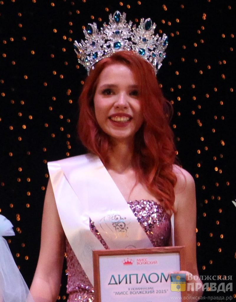 Обладательницей титула «Мисс Волжский 2025» и приза в 25 тысяч рублей стала 18-летняя студентка первого курса экономического факультета ВИЭПП Мария Никитина.