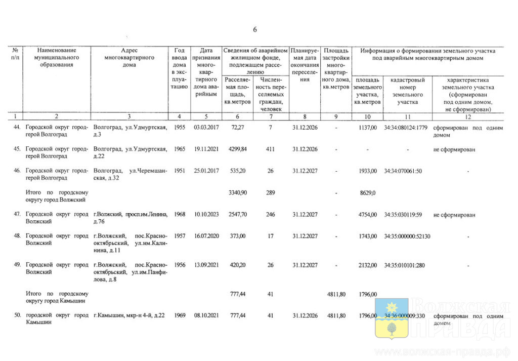 Такие цифры указаны в утверждённой постановлением обладминистрации и официально опубликованной региональной адресной программе «Переселение граждан из аварийного жилищного фонда на территории Волгоградской области в 2025-2027 годах».