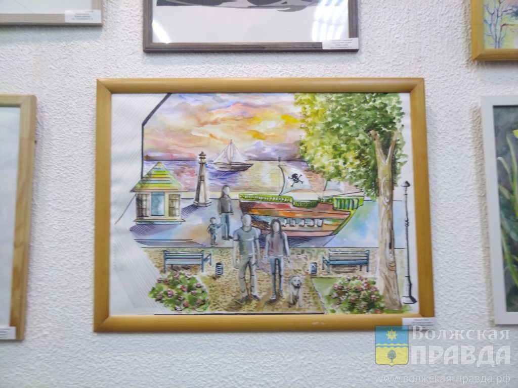 — Мы разрабатывали идеи для молодёжного парка «Ноосфера», – говорит Ника Фесенко. – Это моя курсовая работа. Она выполнена акварельными красками. В основе идеи – создать уютное городское пространство, где было бы интересно отдыхать и молодёжи, и семьям с детьми. В центре моей композиции – пиратский корабль – это игровое пространство для детей. Ещё там есть песочница в виде домика и величавая Волга в золотых лучах солнца. Это одна из видовых точек, в курсовой работе были и другие.