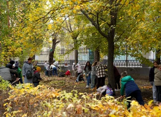 Волжские студенты и школьники провели субботник в сквере первостроителей
