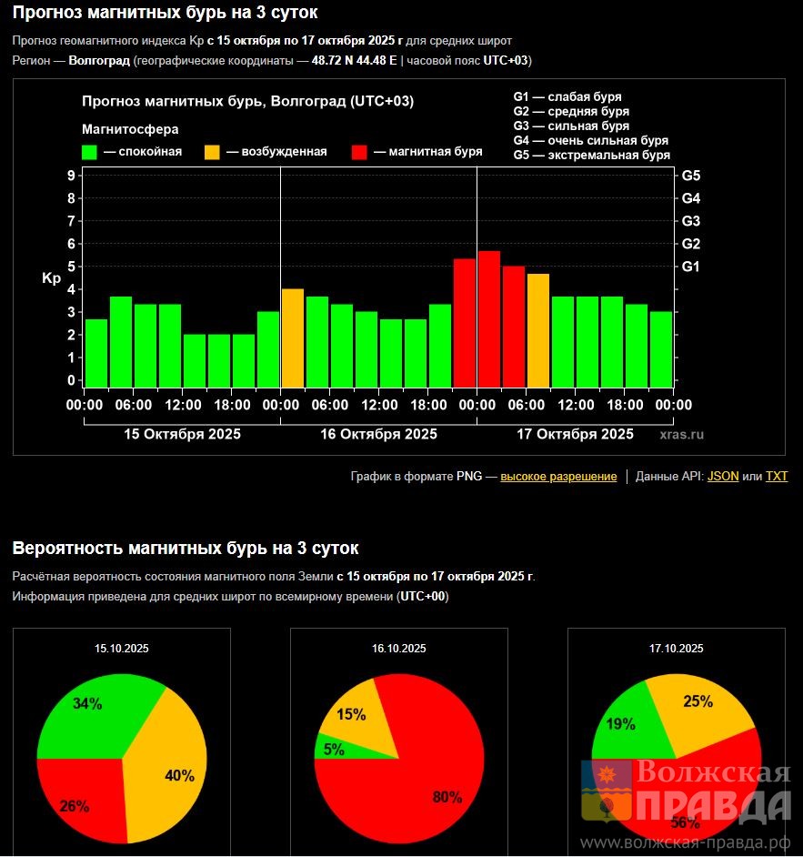 Прогнозирующие модели указывают, что завтра начнут проявляться первые признаки геомагнитного отклика на солнечный всплеск. Земля начнёт сталкиваться с первыми слабовыраженными потоками плазмы, выброшенными три дня назад. С вечера 16 октября и до 9 часов утра 17 октября высока вероятность магнитных бурь уровня G1 – G2. Наиболее значительное влияние на геомагнитную обстановку ожидается в пятницу-воскресенье. В эти же дни возможны яркие проявления полярных сияний.