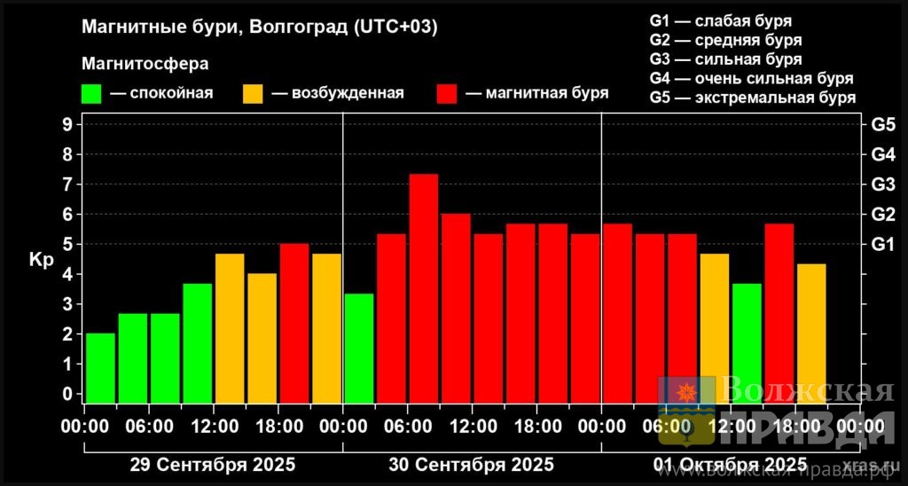 Магнитная буря, которая началась в 3 часа утра 30 сентября, продолжалась до 9 утра 1 октября. По продолжительности событие длилось непрерывно 30 часов, сообщили в Лаборатории солнечной астрономии ИКИ и ИСЗФ. Затем геомагнитная активность немного сбавила обороты. Но уже к вечеру и вплоть до настоящего момента магнитные колебания снова достигли штормовых критериев.