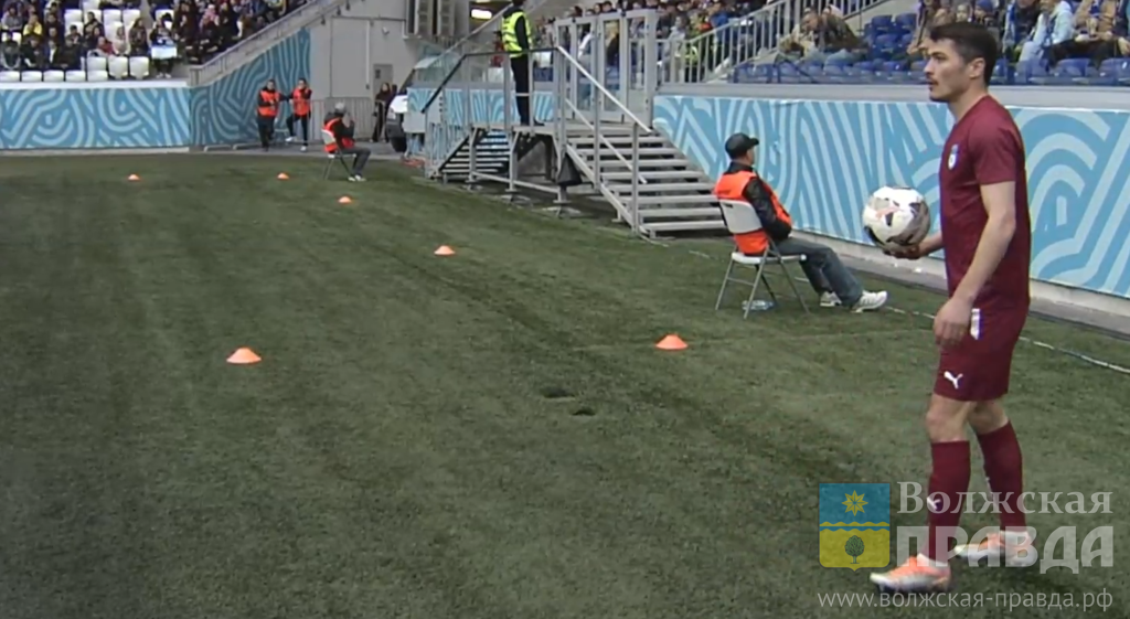 Единственный мяч в створ ворот саратовской команды на 11-й минуте игры красивым дальним ударом из-за штрафной линии направил Давид Давидян (номер 9).