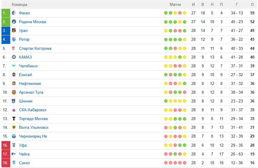 «Сокол» же с 16 очками, набранными за 28 встреч, занимает 18-е место.