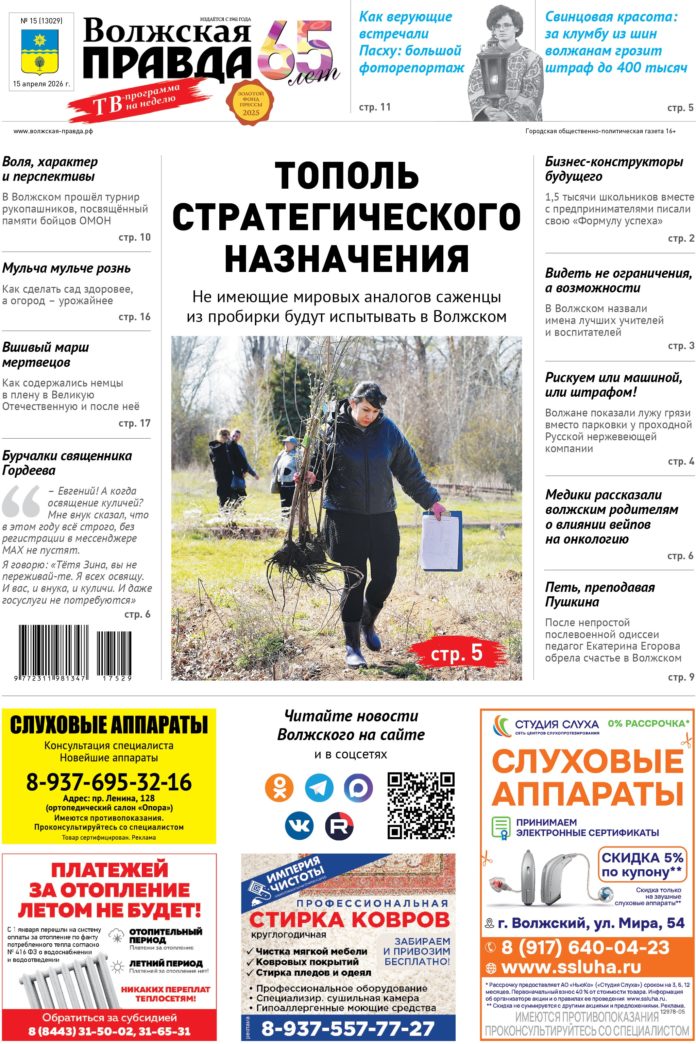 Анонс материалов газеты «Волжская правда» от 15 апреля 2026 года. В этом номере вы прочтёте: