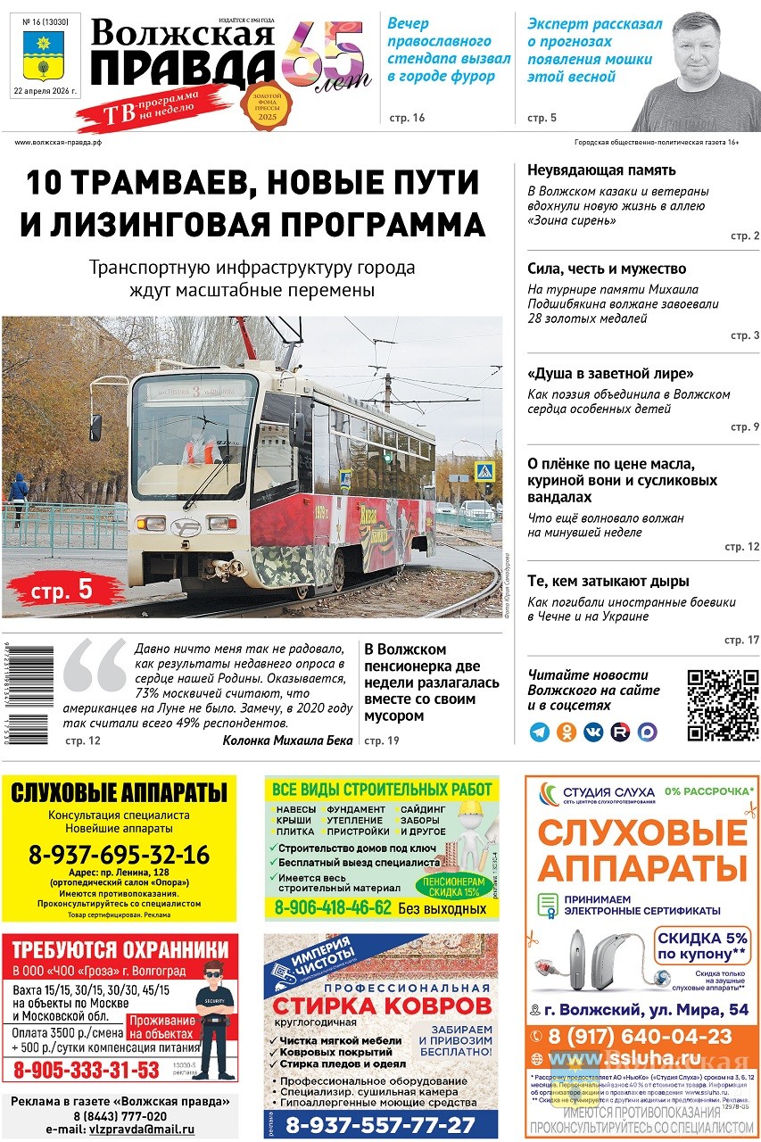 Анонс материалов газеты «Волжская правда» от 22 апреля 2026 года. В этом номере вы прочтёте: