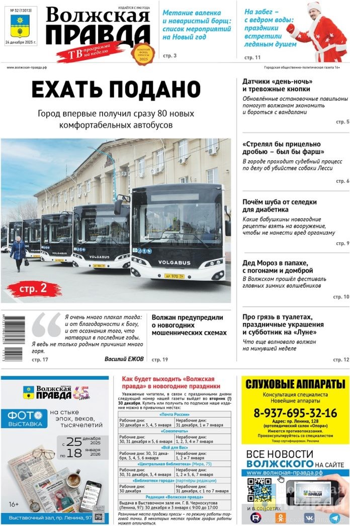Анонс материалов газеты «Волжская правда» от 24 декабря 2025 года. В этом номере вы прочтёте: