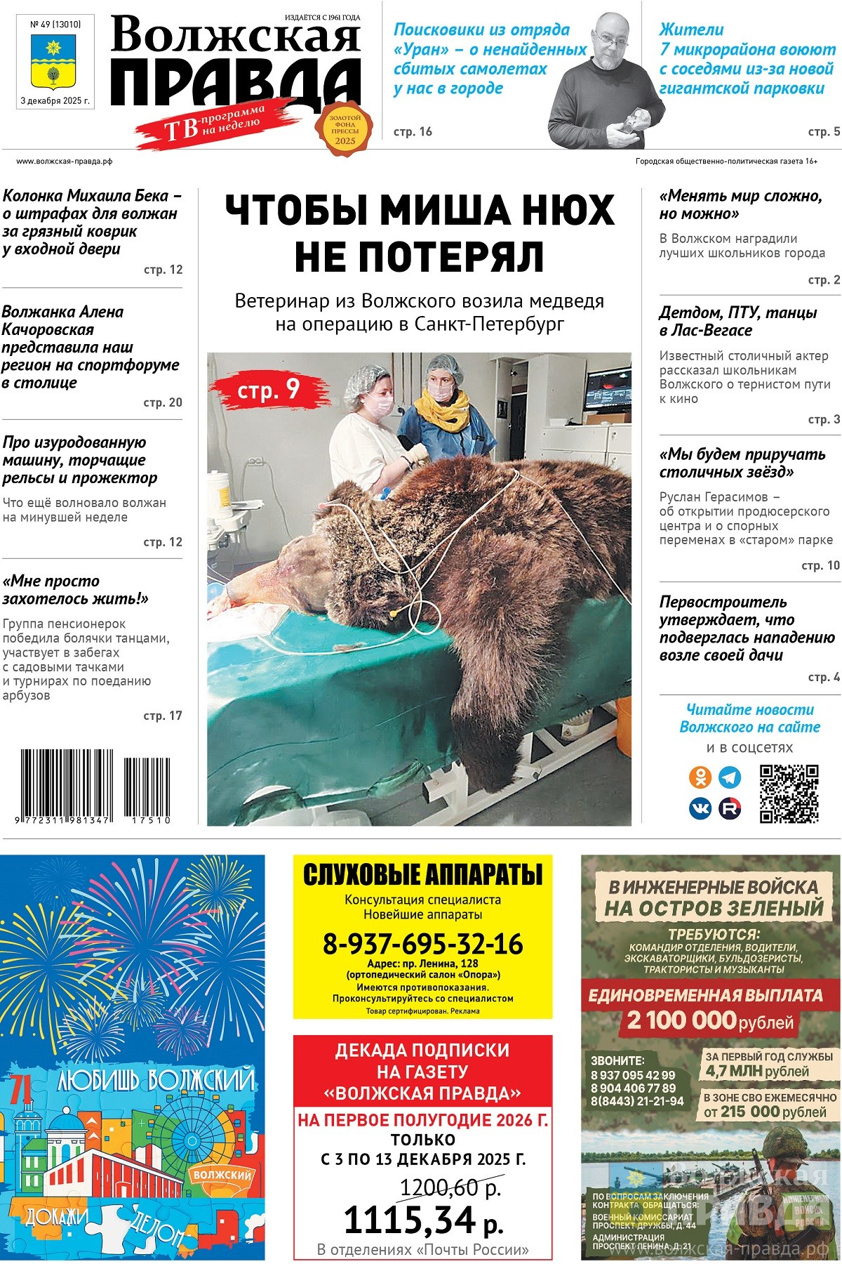 Анонс материалов газеты «Волжская правда» от 3 декабря 2025 года. В этом номере вы прочтёте: