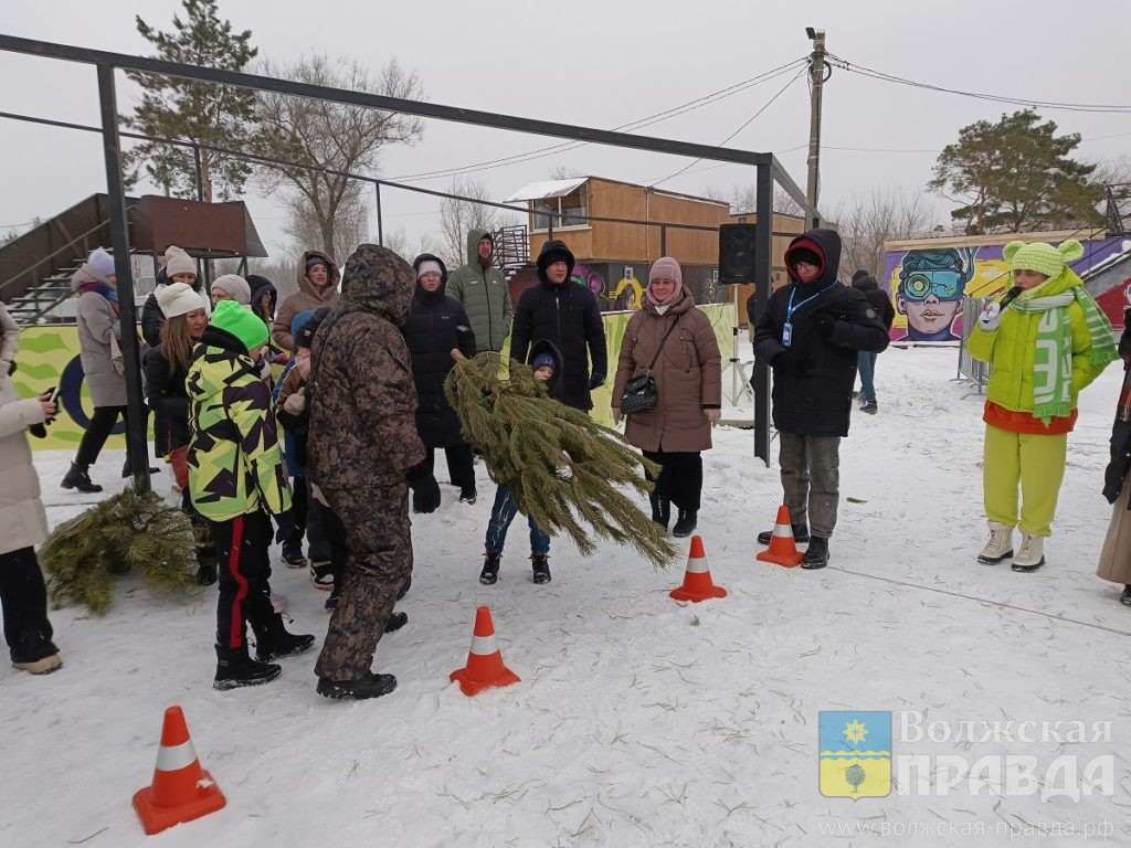 Также участники зимнего фестиваля добра, экологии и энергии в парке «Волжский» приняли участие в спортивных забавах: метании ёлок и снежков, беге с коромыслом.