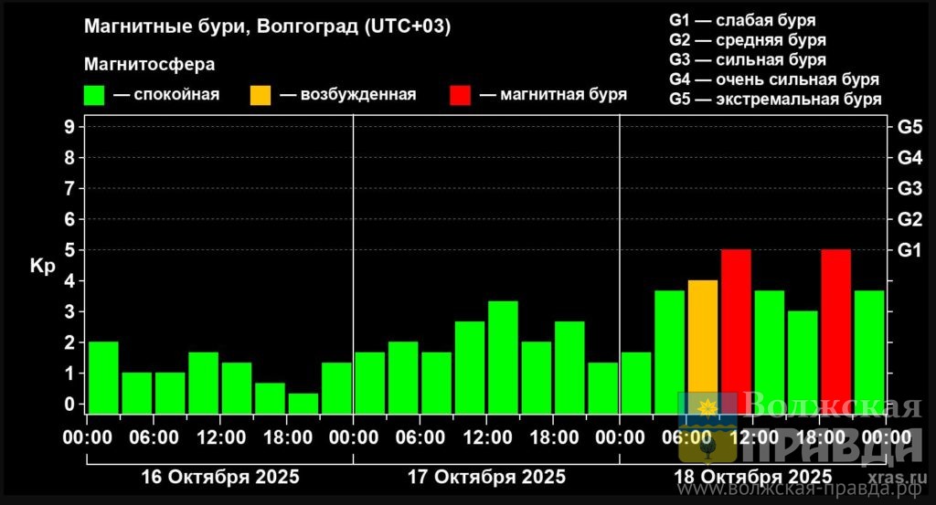 Стоит отметить, что с начала октября уже было две геомагнитных бури. Первая произошла с 1 по 3 дни месяца, вторая — 12-го числа. Сегодня надвигается третья.