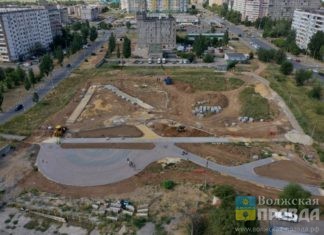 Волжского началось обустройство детских игровых площадок в новом сквере между 37 и 35 школами