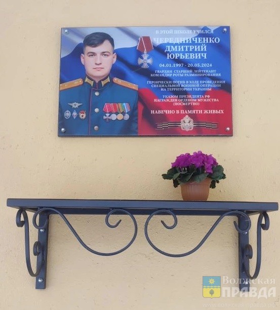 Напомним, 59 парт, носящих имена наших земляков, было установлено в волжских школах с 2019 года в рамках Всероссийского проекта «Парта Героя». А 16 мая 2025 года на фасаде школы № 12 в честь Дмитрия Чередниченко появилась мемориальная доска.