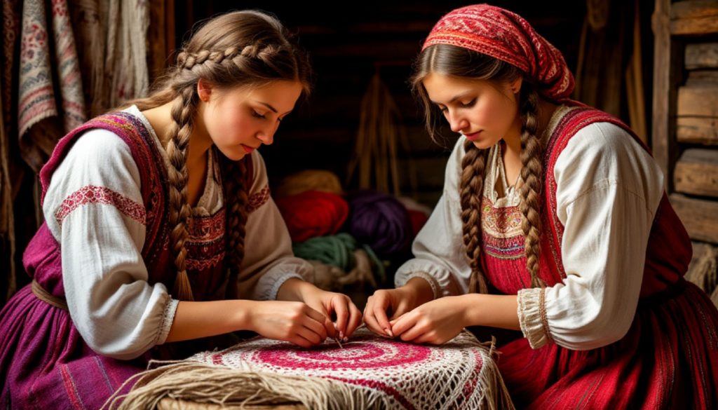 Женщины в старину объединялись порукодельничать: занимались пряжей, шитьём, плетением. А развлекали себя песнями. Считалось, что полезные посиделки принесут удачу и процветание всей семье.
