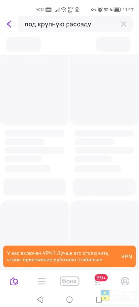 Сейчас, когда волжане пытаются войти на маркетплейс, например, то приложение не грузится, а появляется сообщение с рекомендацией: «У вас включён VPN? Лучше его отключить, чтобы приложение работало стабильно».