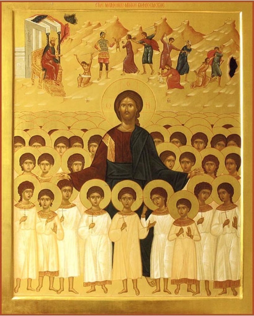 В книге апостола Матфея говорится, что 11 января царь Ирод отдал приказ уничтожить в Вифлееме и окрестных поселениях всех новорождённых мальчиков. Причиной этому послужил страх правителя потерять власть из-за предсказания о рождении Спасителя. В этот день пострадало 14 тысяч младенцев. Они первыми приняли мученическую смерть во имя Христа. Именно этих непорочных младенцев сегодня вспоминает Православная Церковь.