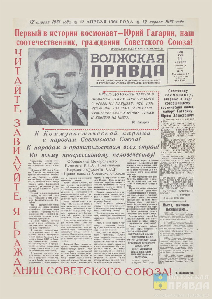 Тогда – 12 апреля 1961 года – была вероятность того, что исторический виток вокруг Земли Гагарин завершит в Сталинградской области. В несколько точек региона были стянуты поисково-спасательные подразделения и техника, чтобы обеспечить все условия для встречи первого космонавта. Но спускаемый аппарат с космонавтом № 1 оказался в Саратовской области.
