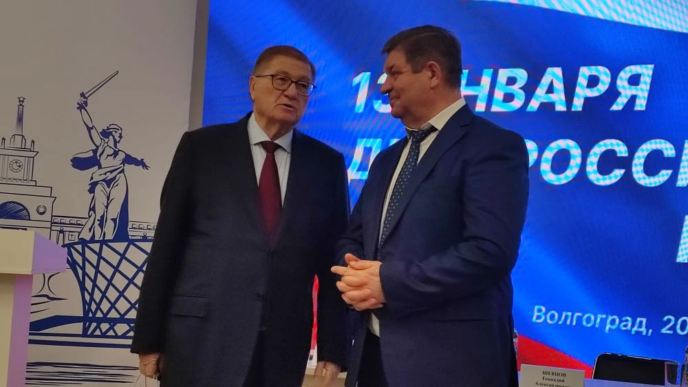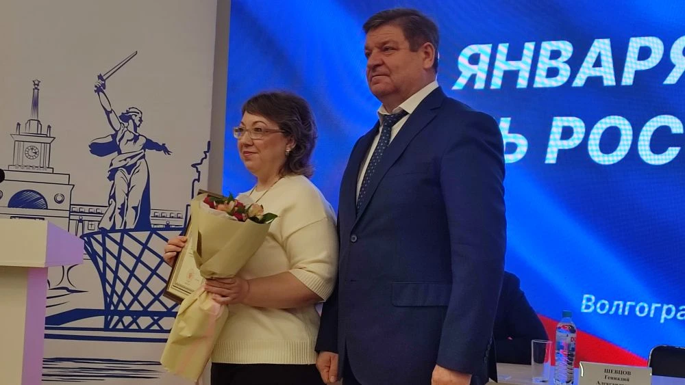 Заместитель председателя Волгоградской областной думы Михаил Струк зачитал присутствующим поздравление спикера регионального парламента Александра Блошкина:
