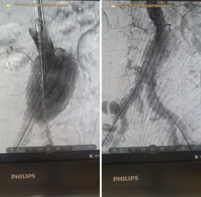 Врачи использовали эндоваскулярную методику, при которой к поражённому сосуду доступ осуществляется через небольшой прокол.