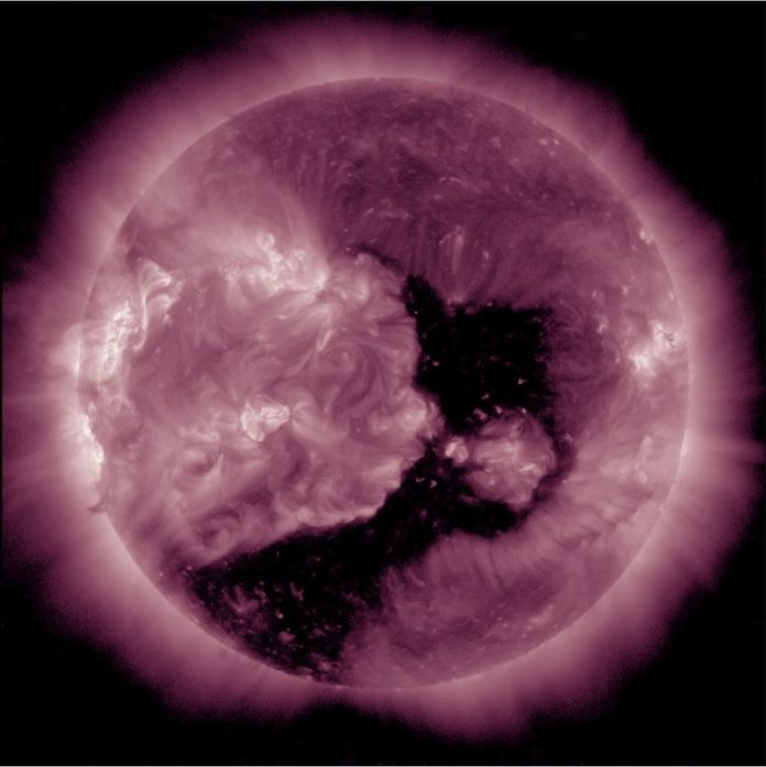 Как стало известно «Волжской правде», первые проявления возмущённого солнечного ветра приборы начали фиксировать на сутки ранее спрогнозированного срока. Его источником учёные называют корональную структуру необычной конфигурации. Она занимает центральную область солнечного диска и располагается в обоих полушариях светила.