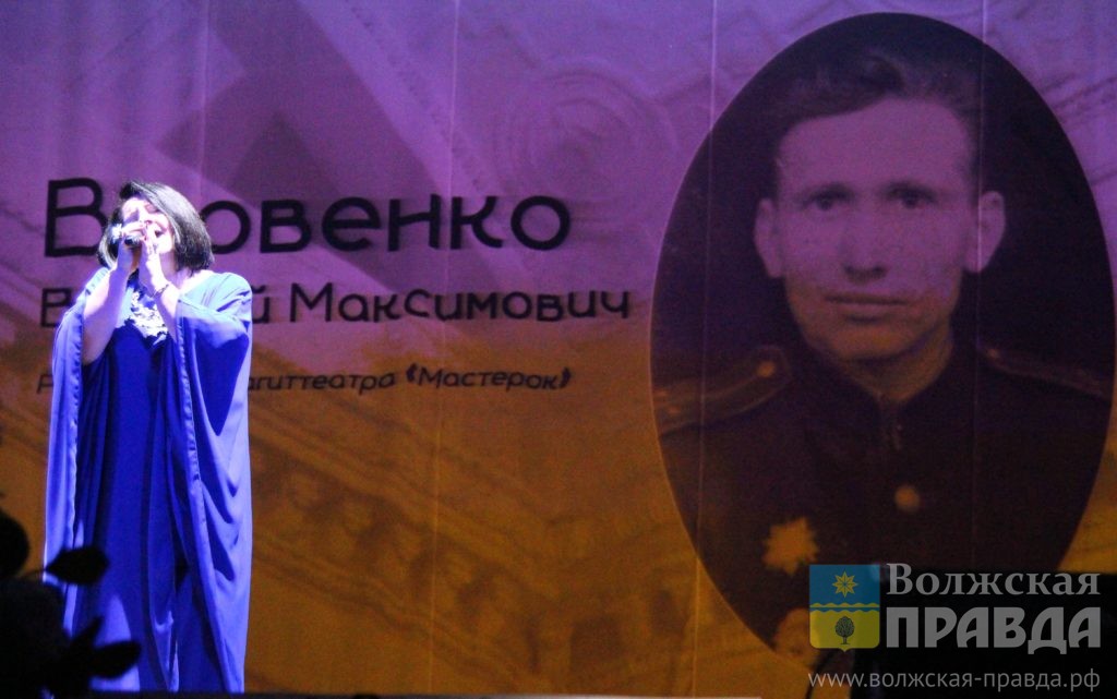 Сценарий развивался неожиданно, и, следом за ультра-стильной коллекцией, расписанной вручную, последовал рассказ о легендарной строительной организации «Сталинградгидрострой». А чуть погодя в боковом проёме сцены появился актер Волжского драматического театра, ветеран боевых действий Николай Варавин
