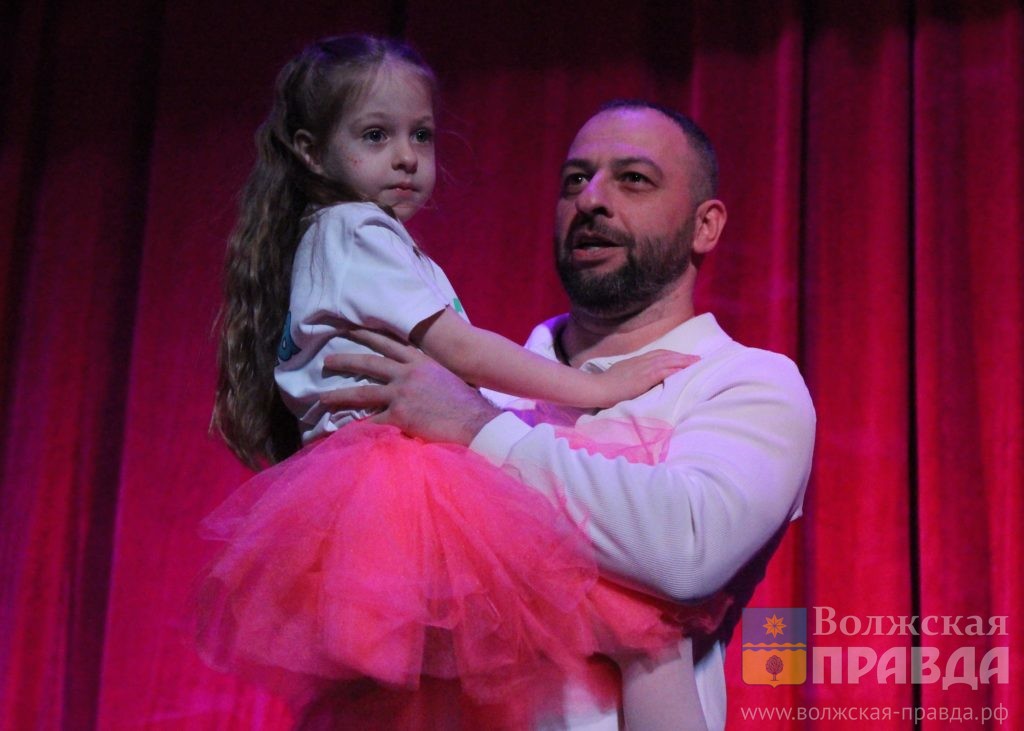 в ходе которой на сцене танцевали папы воспитанников её коллектива со своими малышами, а в завершении с букетом цветов на сцену поднялся и отец вокалистки.