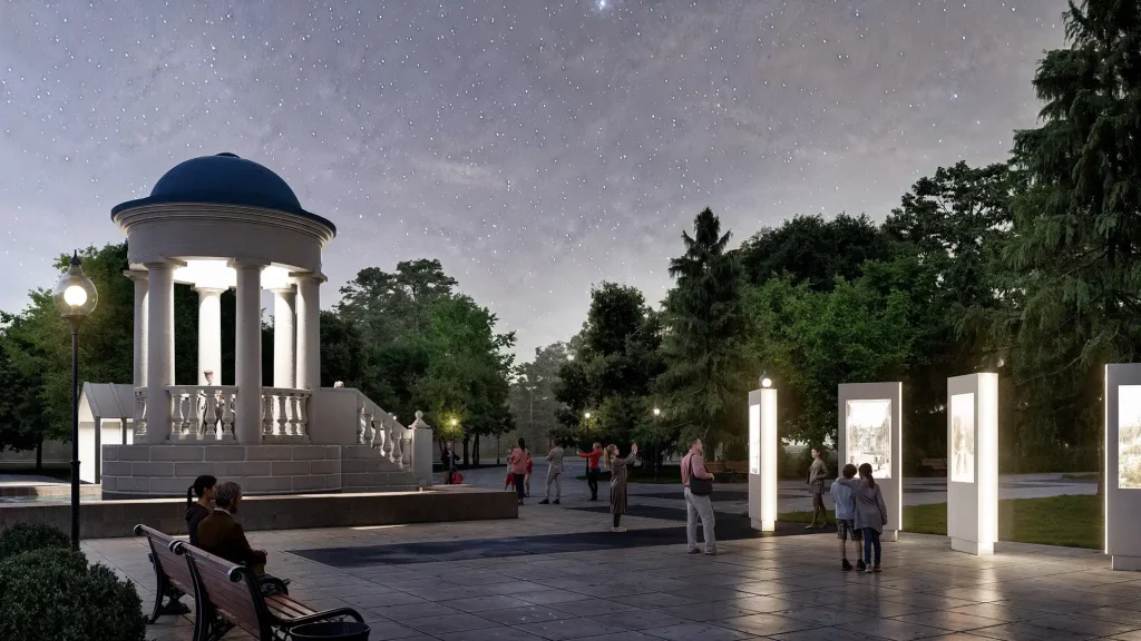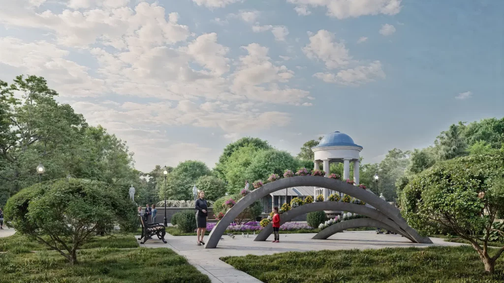 — Всё оказалось именно так, как я предполагал изначально. Но рассылать презентации в самом начале, не имея за собой команды, работающей системы, которая приносит деньги, и мало-мальски оснащённого Дворца, было бы странно. Поэтому в выбранный мною ранее референс, парк города Глазова, добавилось много других вещей из самых лучших парков страны. Это парк Горького с его детскими площадками из металла, парк в Петергофе и другие, менее известные, но не менее красивые места. Насмотренность стала выше, стало чётче понимание и больше партнёров. Просто пришло время. Презентация родилась очень быстро, а вот визуализация далась с трудом. Ведь нужно было выкристаллизовать эту систему, понимания и переосмысления всей концепции парка.