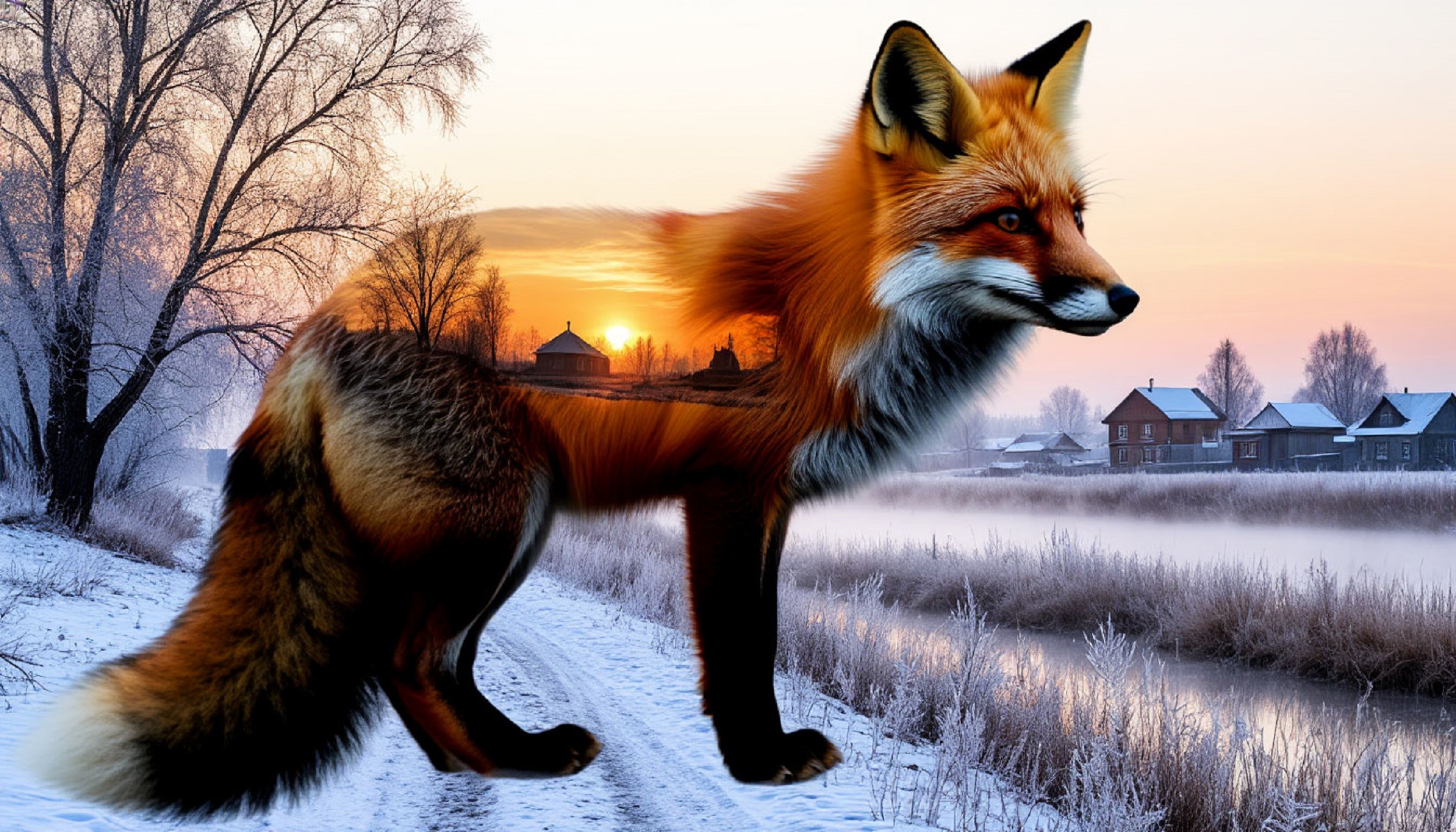 — Конь прилёг на заснеженную гладь — впереди тёплые дни.