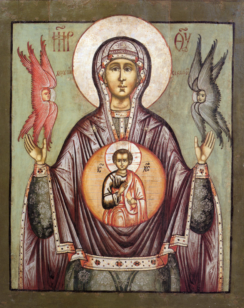 Православная традиция связывает этот день с иконой «Знамение». Она представляет собой изображение Пречистой Девы с воздетыми в молитве к небесам руками и младенцем Христом. Этот образ считается одним из древнейших среди известных иконографических типов изображений Богородицы.
