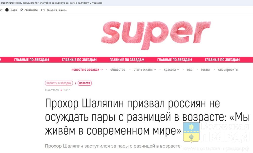 «Мы живём в современном мире и должны учиться не нарушать чужих границ, — сообщает портал о жизни звёзд «Super» со ссылкой на интервью Прохора Шаляпина «Газете.Ru». — Если кому-то нравится жить с разницей в возрасте — это личное дело. Нужно просто порадоваться, что есть на земле ещё одна счастливая пара».
