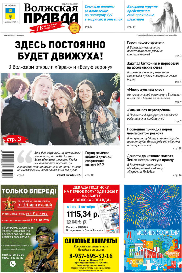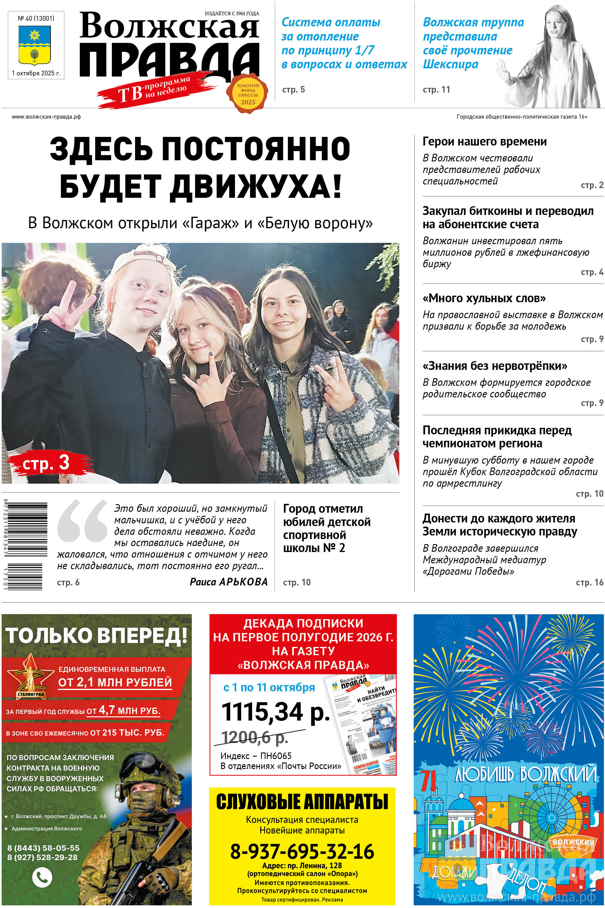 Анонс материалов газеты «Волжская правда» от 1 октября 2025 года