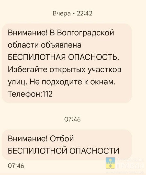 Информация об этом появилась на официальных ресурсах Минобороны страны. СМС-рассылка РСЧС предупредила граждан об опасности атаки БПЛА минувшей ночью, 18 октября, в 22:42, а оповестила об отбое в 07:46.