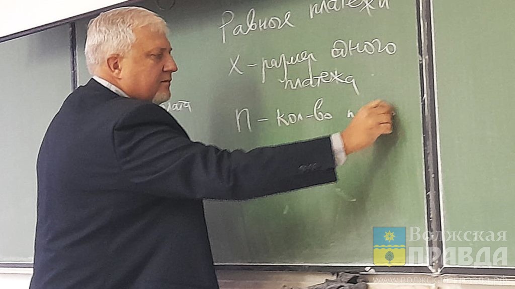 В одной из аудиторий проходило практическое занятие по прикладной математике, доцент, кандидат физико-математических наук Александр Полковников рассказывал школярам о секретах финансовой математики и знакомил с таким понятием, как «Кредиты», молодые люди познакомились со специальными формулами, по которым лихо ринулись рассчитывать проценты возможных доходов.