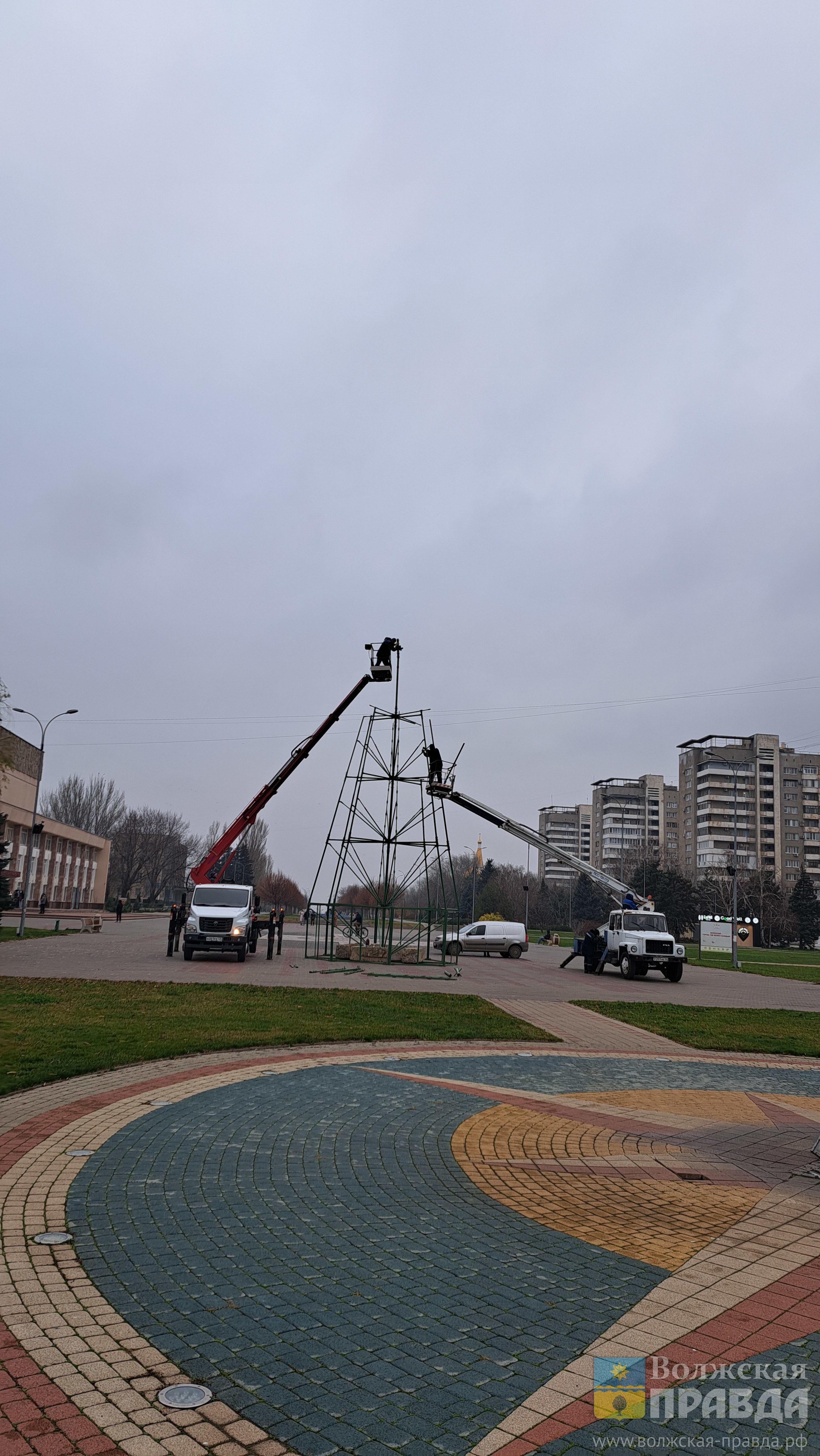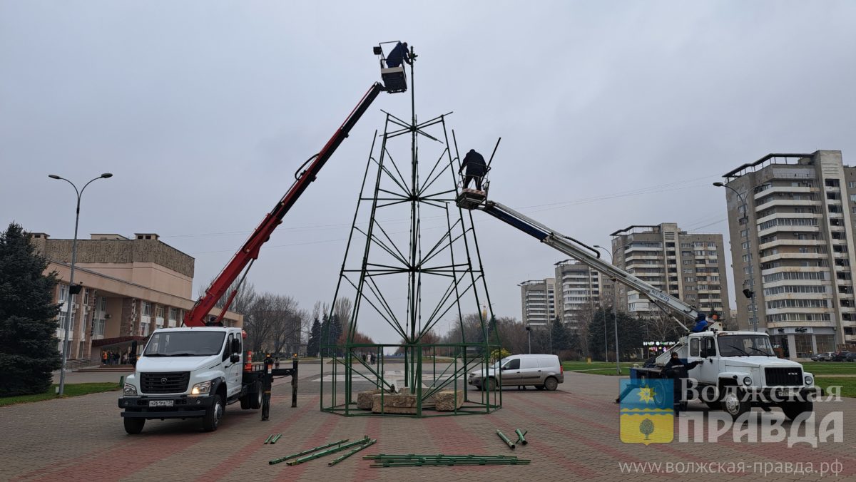 1 декабря уже начали установку главной 20-метровой новогодней елки Волжского на площади Ленина. Она станет центром новой световой композиции под названием «Звездное небо». Рабочие уже установили основание металлической конструкции. В ближайшие дни на каркас прикрепят хвою, повесят световые гирлянды и игрушки. Вокруг новогодней красавицы будет организован светодиодный шатер «Звездное небо».