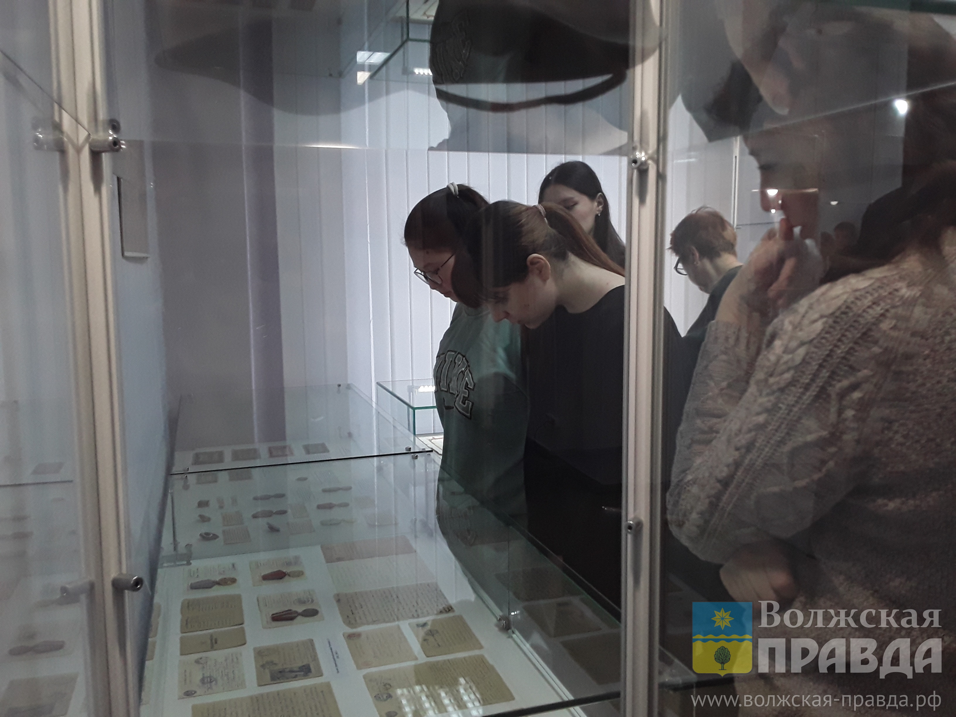 Так, в одной из витрин – группа экспонатов, записанных под № 1. Это документы участника строительства Сталинградской ГЭС Аркадия Николаевича Потехина, поступившие в музей в 1968 году. А на стене – фото первой экспозиции в одном из залов: продукция волжских предприятий, документы, связанных с волжским комсомолом, Героями Социалистического труда, передовиками производства.