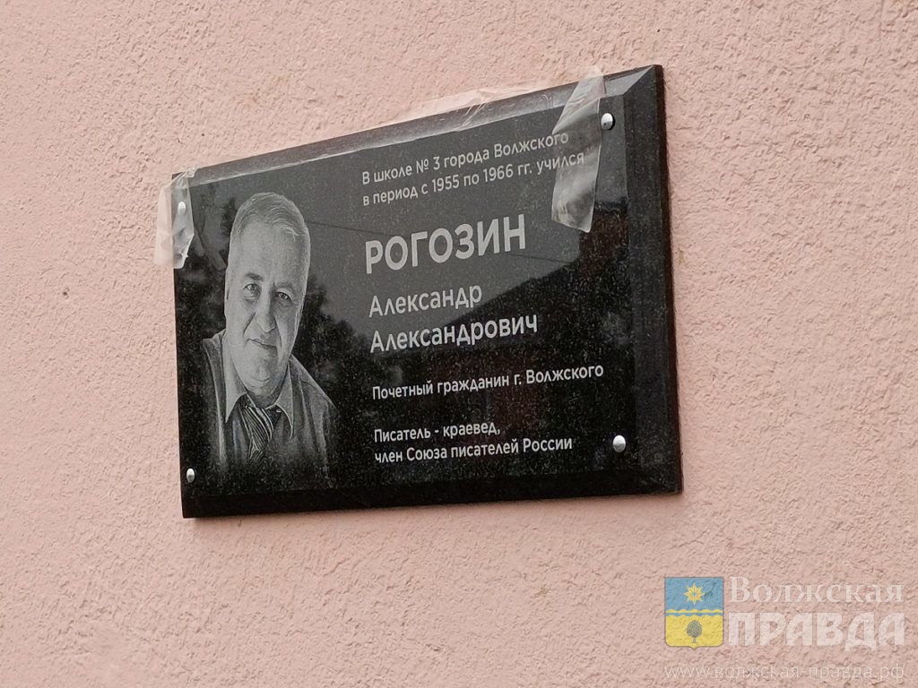 Памятный знак установлен на фасаде муниципальной школы № 3, в которой Почетный гражданин города Волжского учился с 1958 по 1966 год. В торжественном мероприятии приняли участие родные Александра Рогозина, руководство Волжского, представители городского и областного депутатских корпусов, общественность, ветераны, педагоги и школьники.