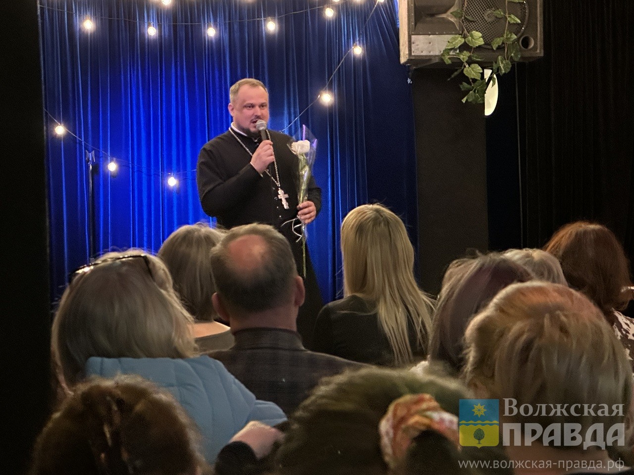Батюшка «бурчал» и пел, заставлял публику смеяться и вздыхать, задуматься о главном и погружаться в детство. Здесь собрались неравнодушные к хорошему слогу горожане, ценители доброго юмора, друзья, семья… Пришёл и остался до конца спикер Волжской городской Думы Сергей Аксенов.