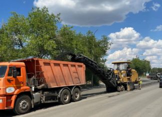 На улице Энгельса в Волжском приступили к фрезерованию старого асфальта