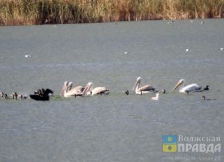 В Волжском на Большом Лимане замечен краснокнижный кудрявый пеликан