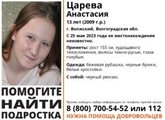 В Волгограде и Волжском волонтеры поискового отряда «Лиза Алерт» разыскивают школьницу, которая пропала 25 мая. С тех пор о ее местоположении ничего неизвестно. Речь идет о 13-летней Анастасии Царевой из города Волжского. В поисковом отряде...