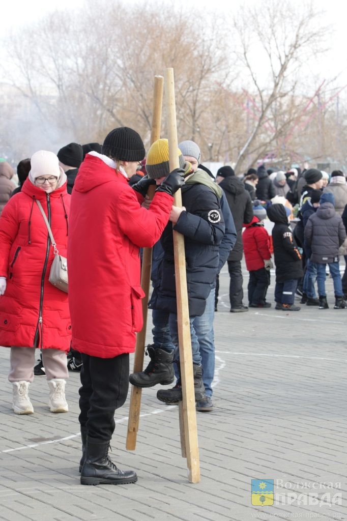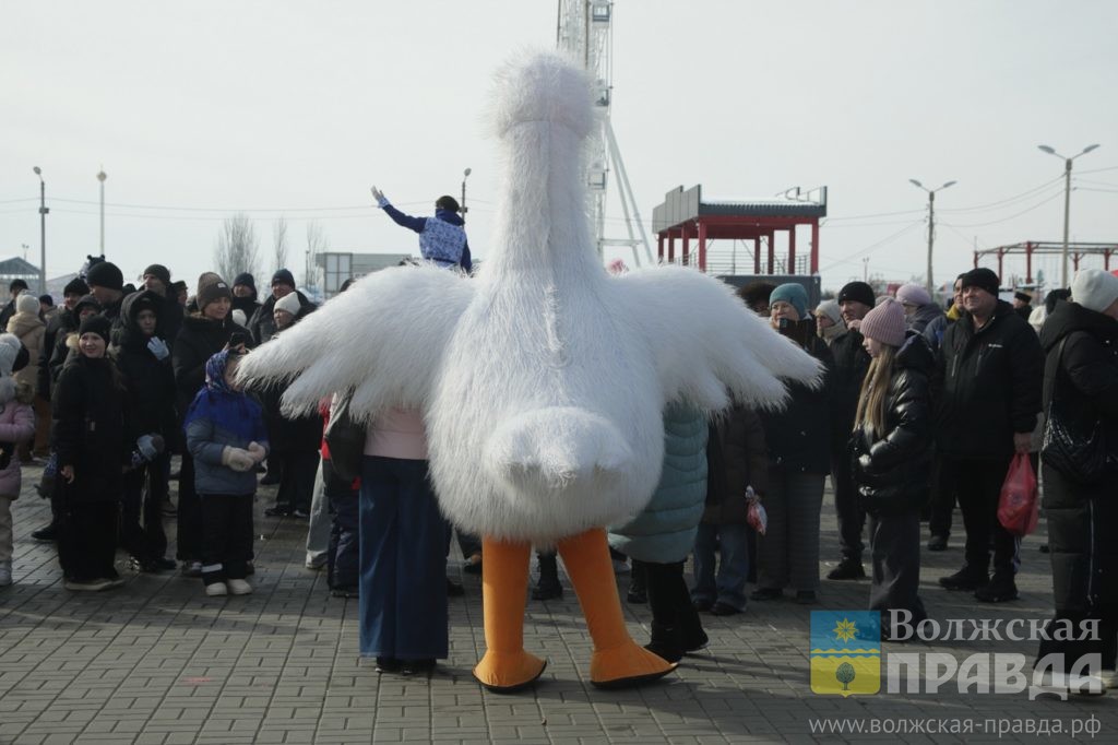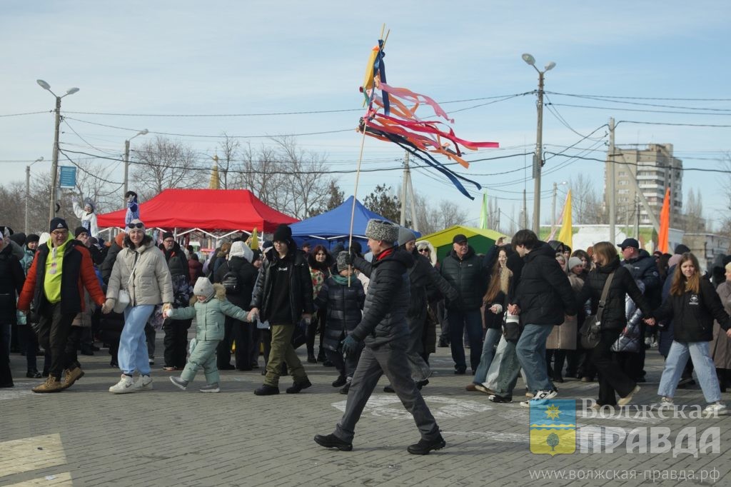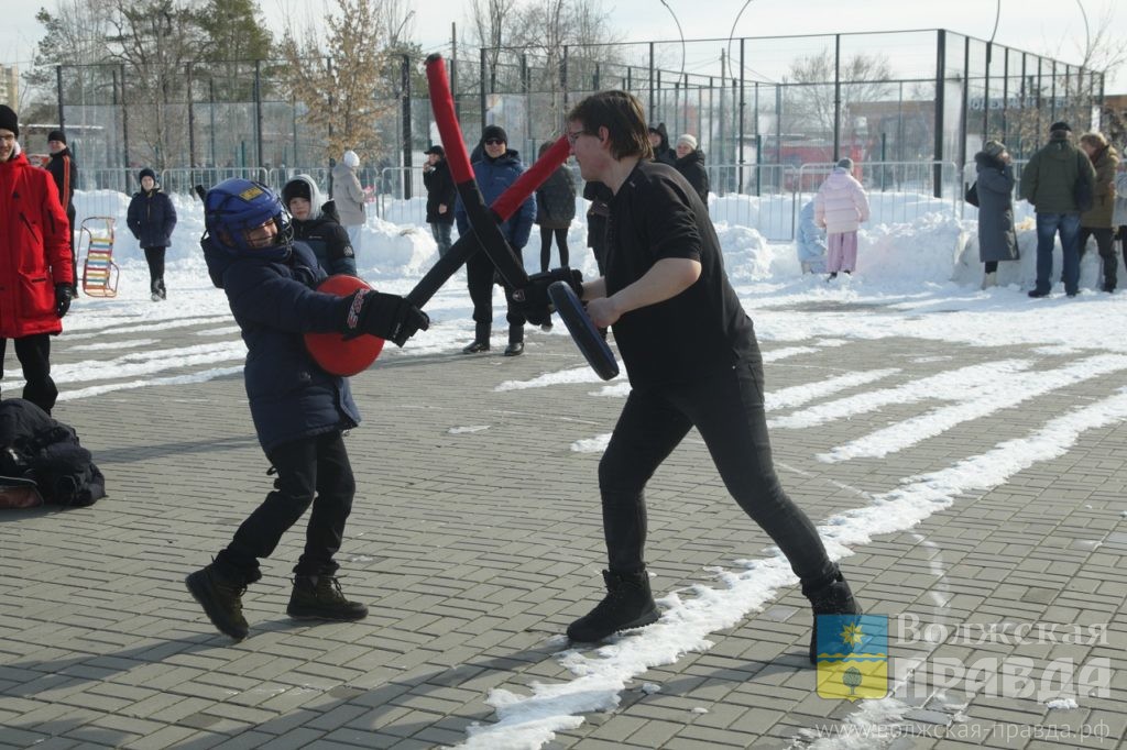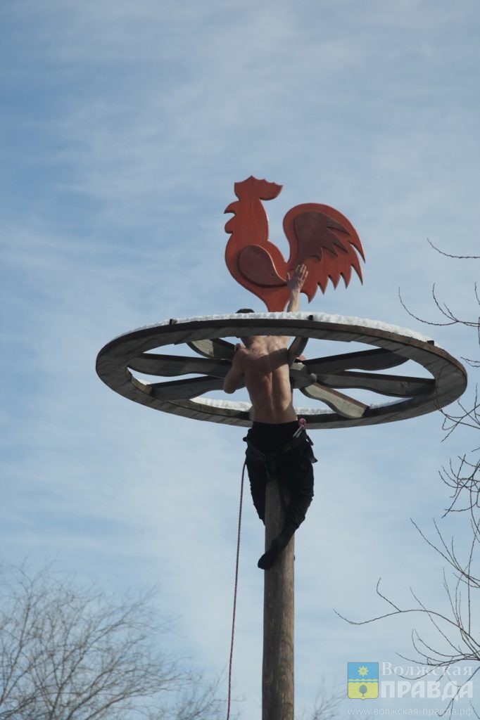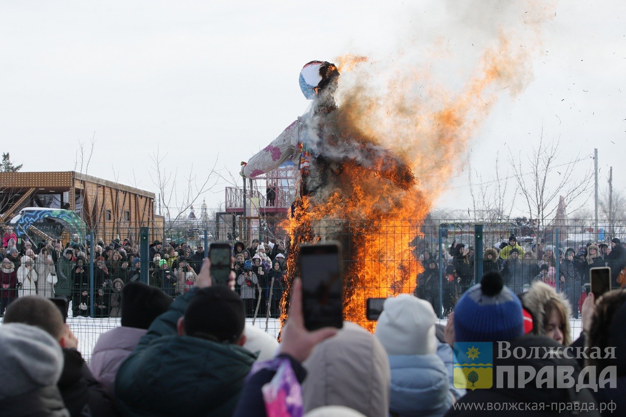 В парке «Волжский» жители города наслаждались масштабной праздничной программой. Народные умельцы демонстрировали свои изделия, а торговые ряды изобиловали блинами и другими угощениями. Трое смельчаков смогли покорить ледяной столб, добившись успеха в этом испытании.