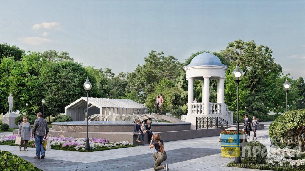 Главный архитектор Волжского Илья Поступаев порекомендовал команде дворца сохранить планировочную структуру парка, сделав на этом акцент. А в северной части воссоздать ту историческую планировку, которая есть во всех книгах. Поинтересовался Илья Анатольевич и центральными фонтанами с облицовкой из бутового камня.