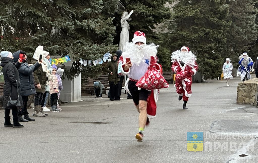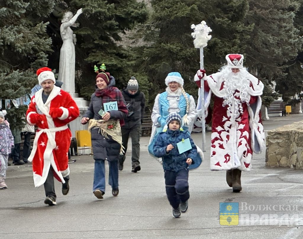 Следующим шёл детский забег, участниками которого стали ребята в возрасте от 7 до 13 лет. В молодёжном – соревновались подростки до 17 лет. А на финальный старт вышли волжане в сказочных костюмах. Первым из них преодолел обозначенный путь 38-летний Александр Мавромати, надевший красный колпак Санта Клауса.