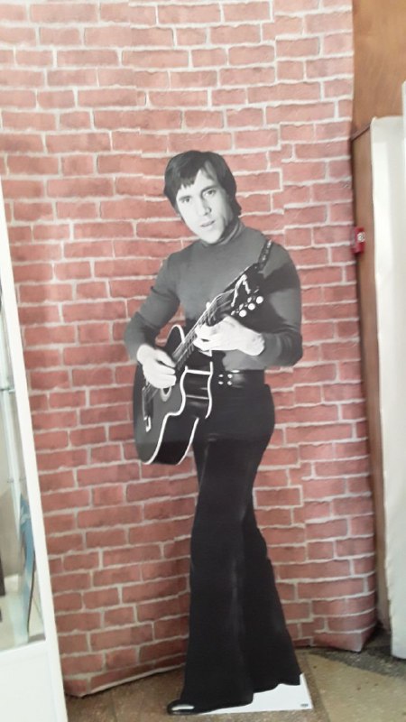 Представлены также пластинки с песнями Владимира Высоцкого: и прижизненные, и выпущенные во второй половине 80-х. А рядом картонная фигура самого поэта с гитарой. Музейщики сделали ее специально к выставке и называют «элементом фотозоны». То есть, разрешается встать рядом и сфотографироваться. Сделать это можно до конца февраля, пока работает выставка.