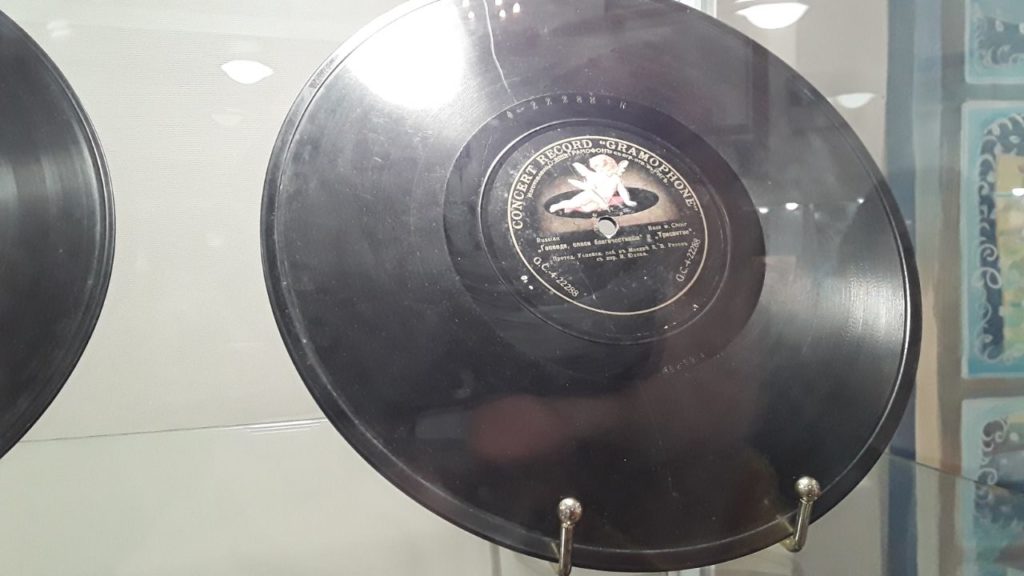 Одна из самых старых пластинок в экспозиции произведена в 1911 году в Варшаве фирмой «Сирена Рекорд», и записан на ней вальс «Кисынька». Кстати, первый в Российской империи пластиночный завод появился в Риге, второй – в Варшаве. И до середины века грампластинки были вовсе не виниловыми, а шеллаковыми. Чем они различаются, расскажет экскурсовод.