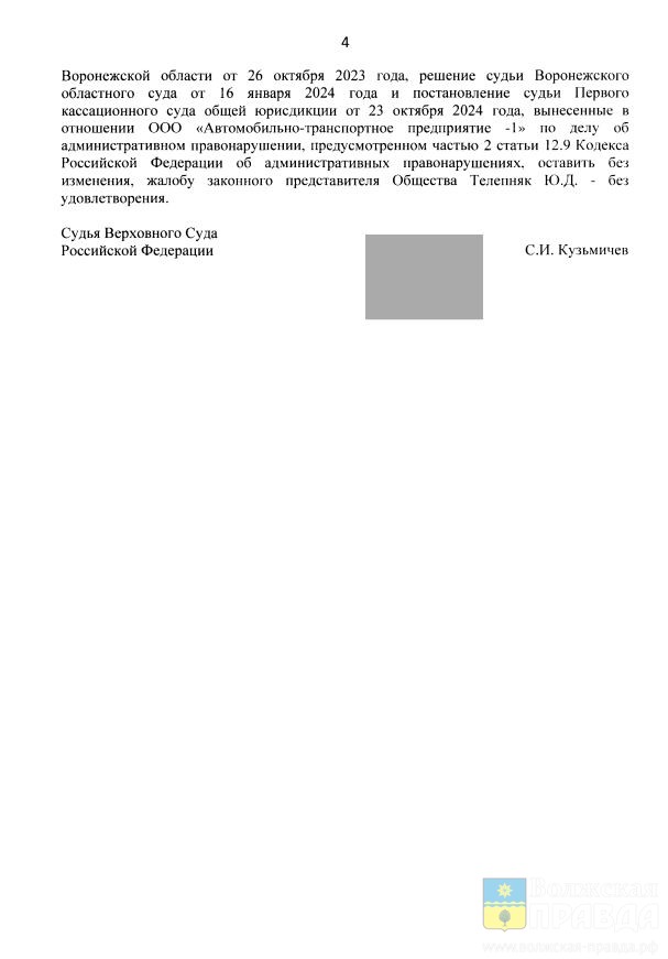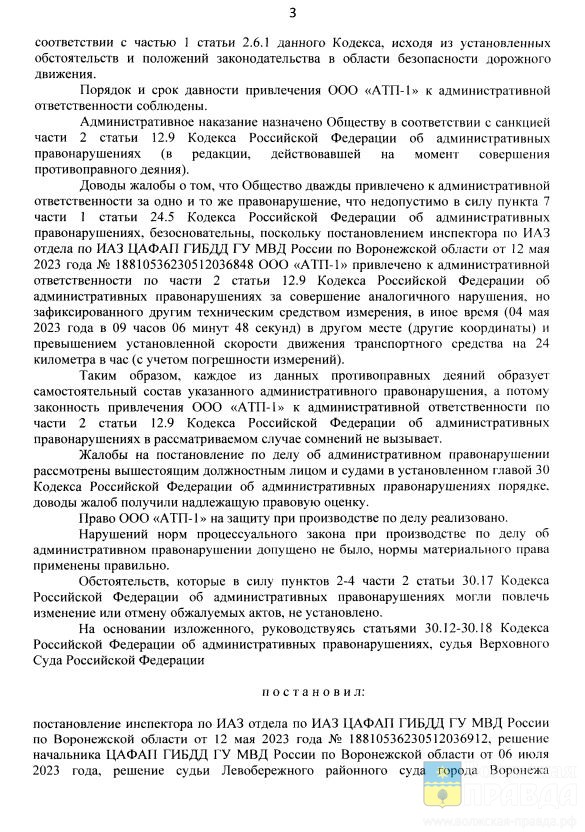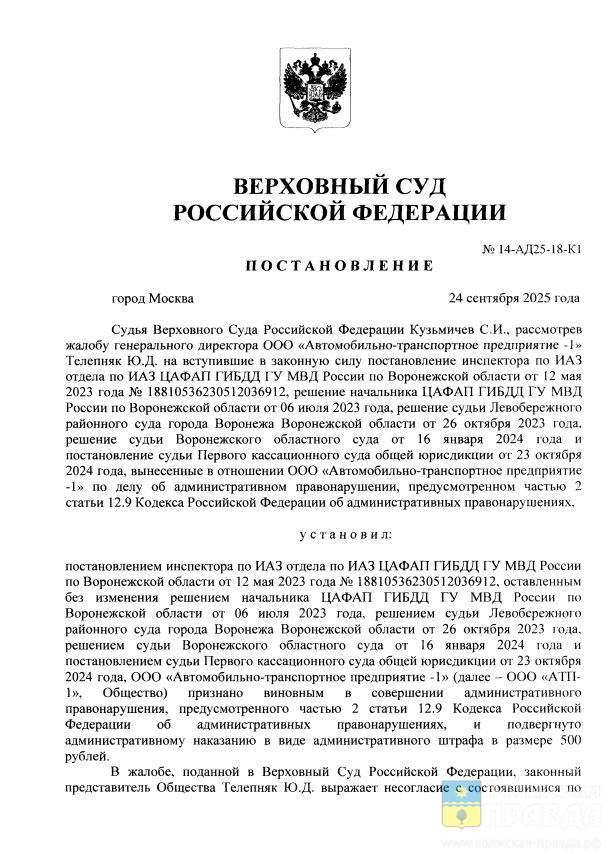 ″Каждое из данных противоправных деяний образует самостоятельный состав указанного административного правонарушения, а потому законность привлечения ООО «АТП-1» к административной ответственности <…> в рассматриваемом случае сомнений не вызывает ″, — написано в тексте постановления.