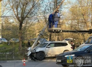 Вылетел на обочину и обрушил столб: в Волжском водитель кроссовера снёс опору освещения