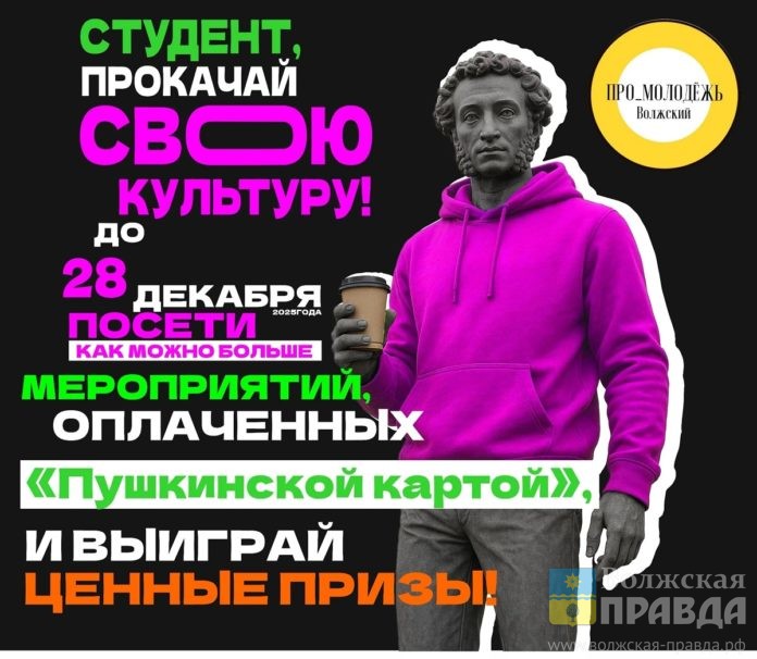 В Волжском набирает обороты уникальный проект для учащейся молодежи — конкурс «Прокачай свою культуру». Инициатива призвана расширить возможности использования «Пушкинской карты» среди учащихся высших и средних учебных заведений.