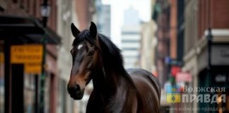 Безбожный цокот: по Волжскому прогуливается удравшая из храма лошадь