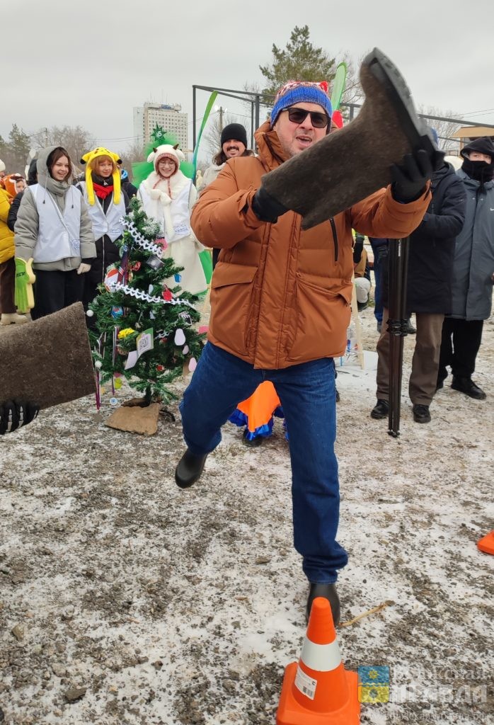 Восстановив силы горячим борщом и пловом, гости и участники фестиваля опробовали силы в метании валенка. К счастью не дюжих способностей для этого не требовалось, поэтому к забаве присоединились все – от мала до велика.